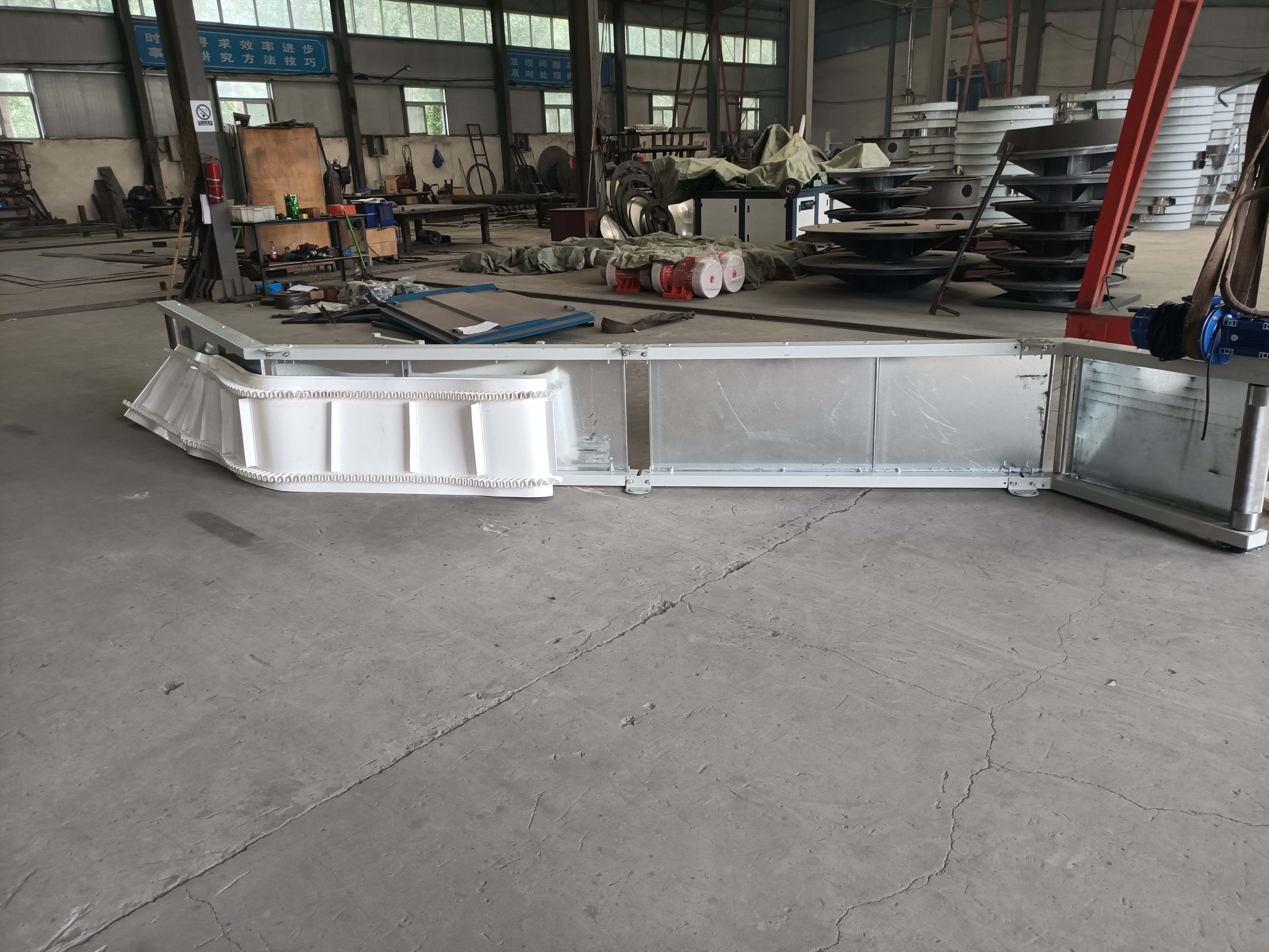 驅動系統配置:驅動系統配置分開放式與閉式兩類,各有優劣。開式驅動采用Y系列電動機+ZJ型軸裝式減速器,功率5.5-315kW,適用于大功率長距離輸送;閉式驅動以電動滾筒為核心,集成多功能,功率1.5-75kW,結構緊湊、安裝便捷,價格較開式低15%-20%。