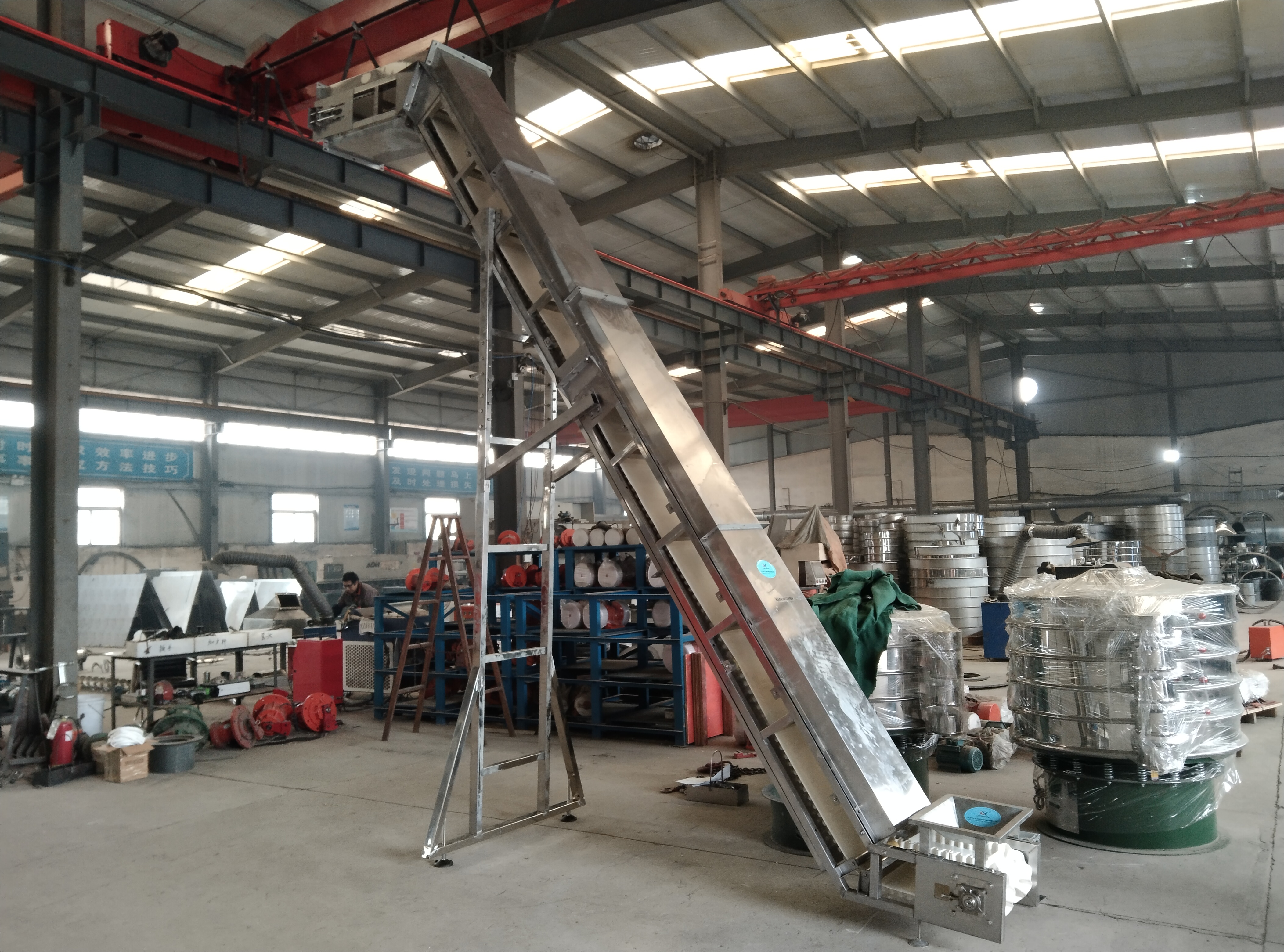 PVC皮帶輸送機:輸送帶采用食品級PVC材質,表面光滑易清潔,適配食品加工、醫藥等對物料潔凈度要求高的行業。價格主要取決于帶寬、輸送長度,區間約為2萬-6萬元。